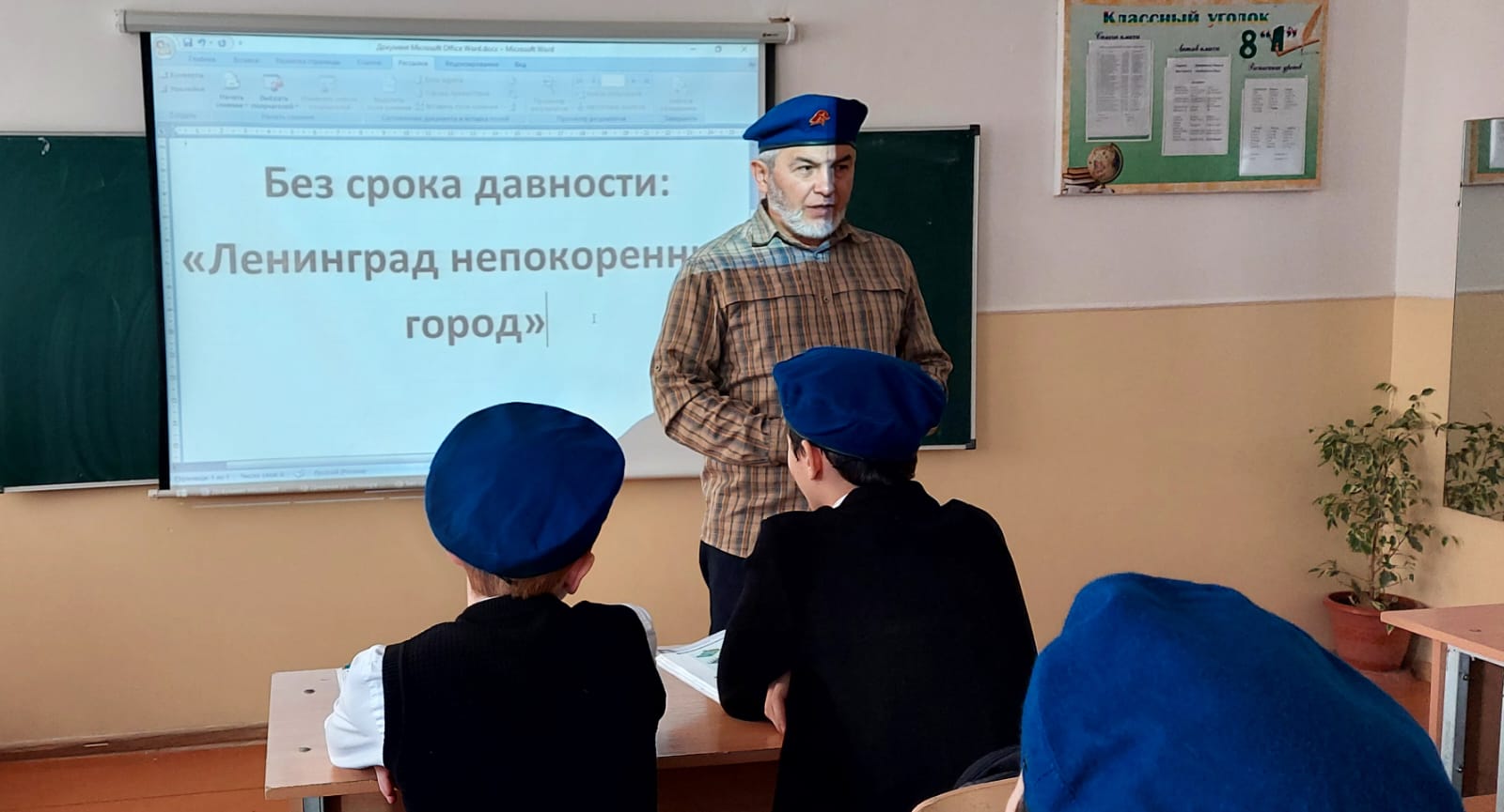 27.01.2023 в 8 "А" классе был проведен Всероссийский урок по истории "Без срока давности: Ленинград-непокоронный город". Урок провел учитель истории Умарова У.М..