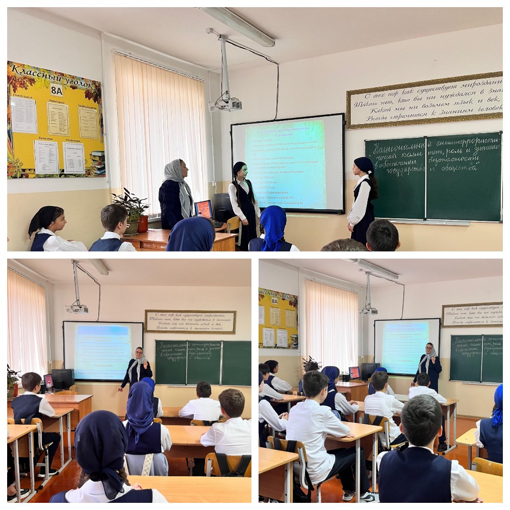 19.09.2024Отделом в Шалинском районе УФСБ России по Чеченской Республике совместно с МУ «Отдел образования Шалинского муниципального района Чеченской Республики» проведено профилактическое мероприятие в МБОУ "СОШ №8 г. Шали на тему: «Национальный антитеррористический комитет, роль и значение в обеспечении безопасности государства и общества».