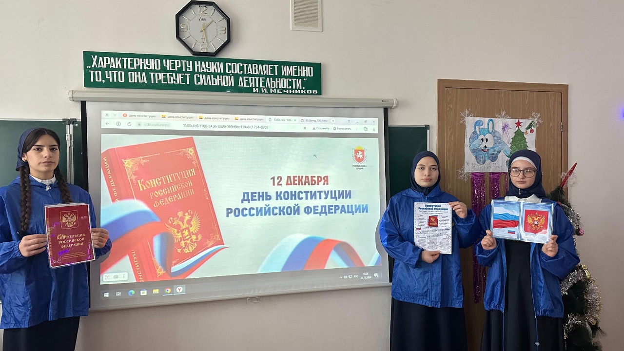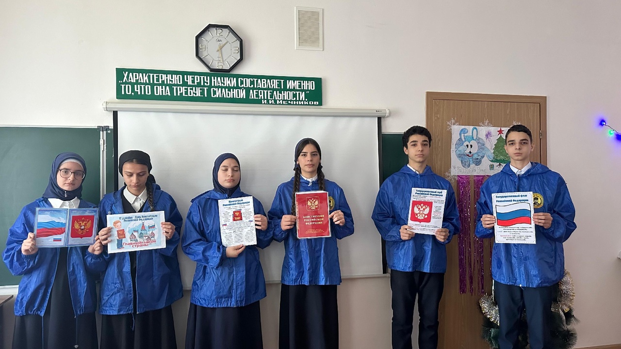 В целях патриотического воспитания детей и молодежи 11 декабря 2024 года, в МБОУ «СОШ 8 », с участием отряда «Юные Кадыровцы » проведено мероприятие «Основной Закон государства », приуроченное ко Дню Конституции.