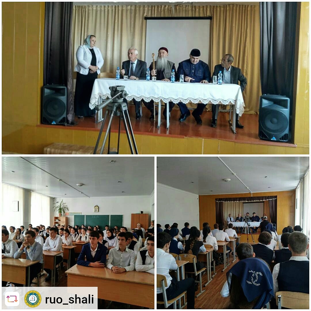 11.10.2017В "МБОУ СОШ №8 г.Шали, прошла встреча с учащимися старших классов. На встрече присутствовали Кадий Шалинского муниципального района Хож-Ахмед Неттиев, Председатель совета старейшин Шалинского района Мадаров Муса .