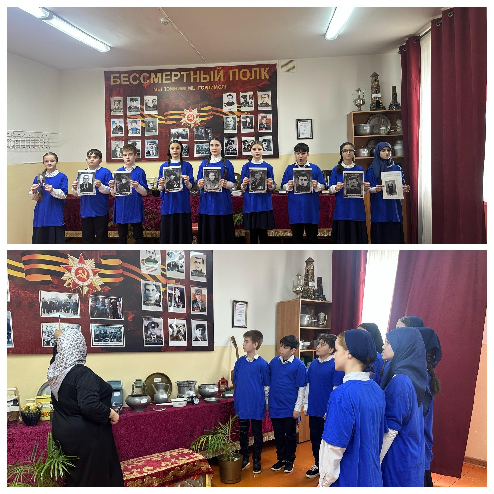 17.04.2025Отделом в Шалинском районе УФСБ России по Чеченской республике совместно с МУ «Отдел образования Шалинского муниципального района Чеченской республики» проведено профилактическое мероприятие в МБОУ «СОШ Nº8 г.Шали» на тему: «80-я годовщина Победы в Великой Отечественной войне, герои - уроженцы Шалинского района ЧР».