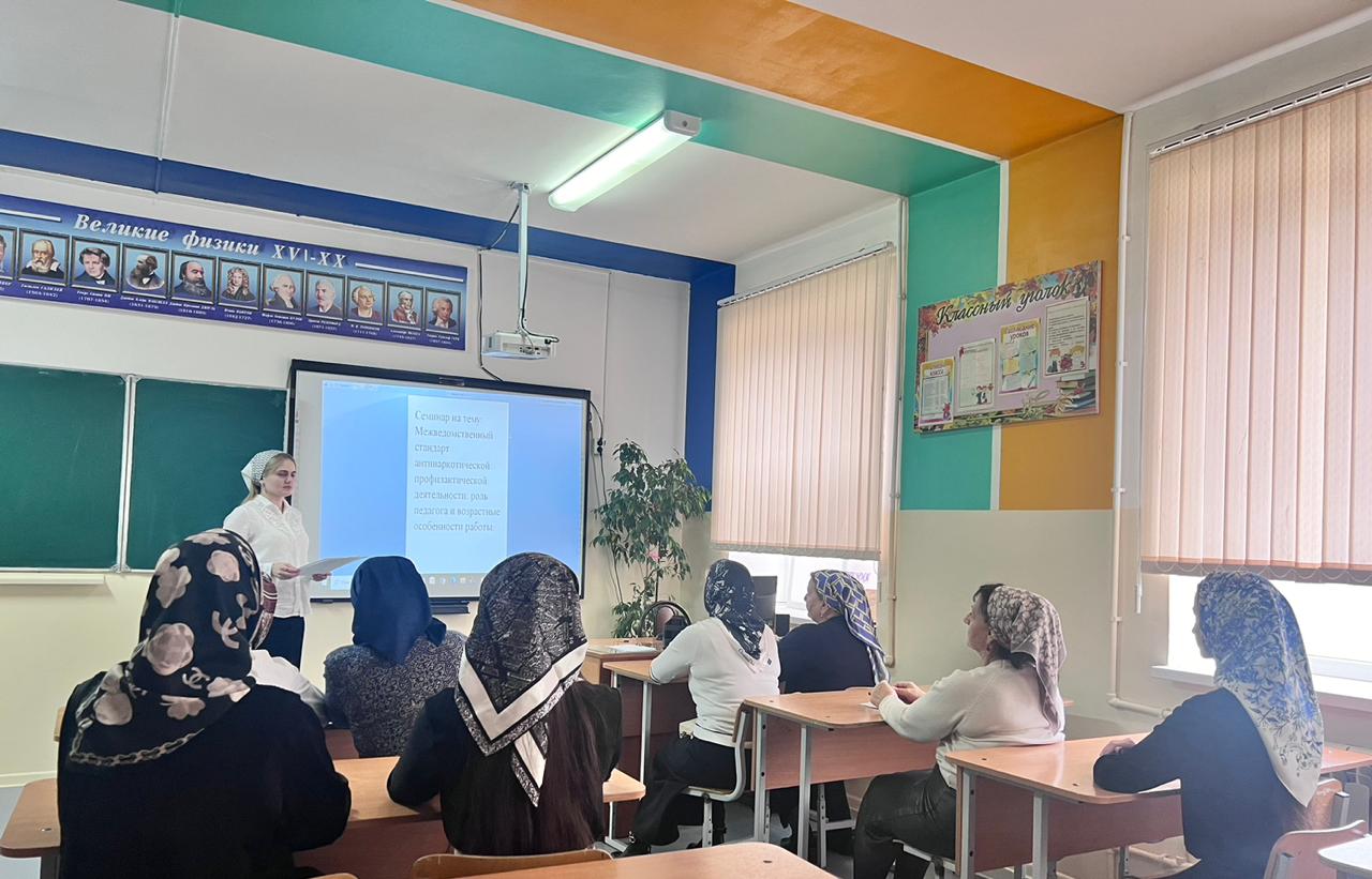 13.11.2025В МБОУ «СОШ №8 г. Шали» состоялся практический семинар для педагогов по вопросам профилактики наркомании и формирования здорового образа жизни среди учащихся.Мероприятие, организованное педагогом-психологом Успахаджиевой З.Н., было посвящено теме: «Межведомственный стандарт антинаркотической профилактической деятельности: роль педагога и возрастные особенности работы».В ходе семинара педагоги:- Изучили современные методики работы с разными возрастными группами учащихся- Обсудили механизмы формирования устойчивости к негативному влиянию сверстников - Рассмотрели вопросы межведомственного взаимодействия в профилактической работе